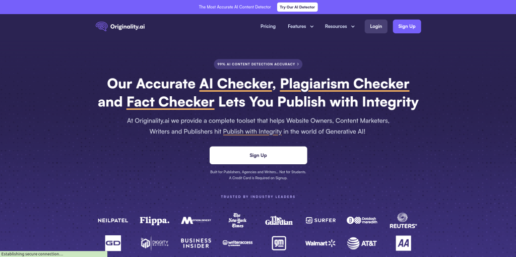 Originality.AI is a premium tool designed to identify both AI-generated text and plagiarism. It’s widely used by marketers and educators.