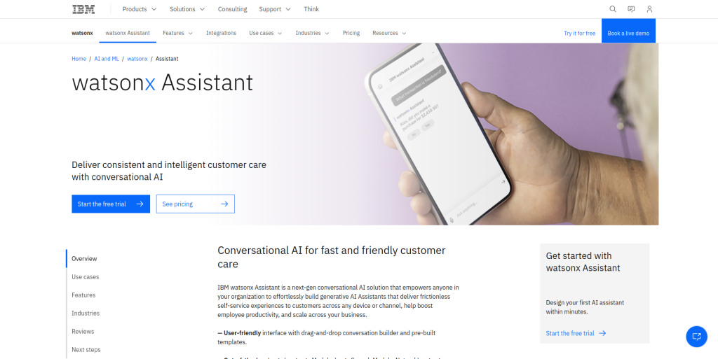 IBM Watson Assistant is an industry leader in AI customer service, offering powerful automation and customization.