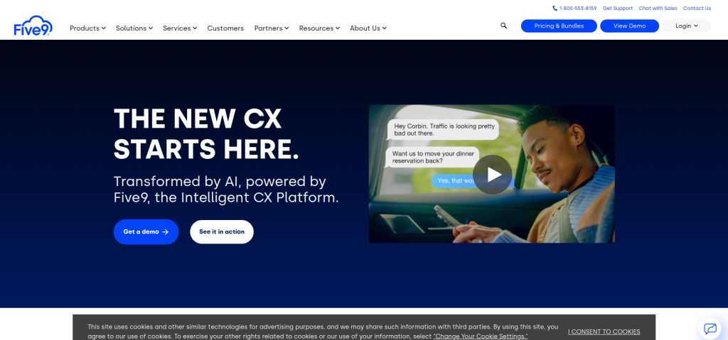 Five9 combines AI with cloud technology to create an efficient contact center solution. Its AI capabilities enhance customer interaction through features like predictive dialing and intelligent routing.