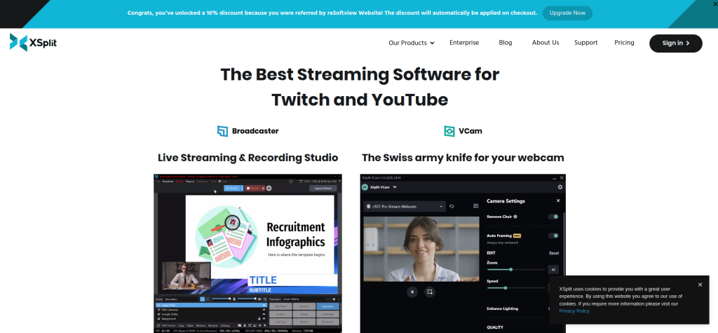 XSplit Gamecaster is designed specifically for gamers who want an easy-to-use tool for streaming and recording.