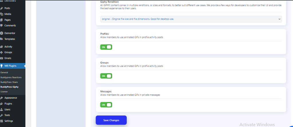 Step 2: Configuring the BuddyPress Giphy Plugin