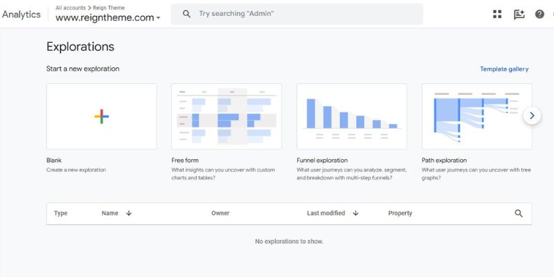 A powerful feature for advanced users, Explore lets you build custom reports using a drag-and-drop interface. Choose from templates like funnel analysis, segment overlap, and path exploration to visualise specific user journeys and uncover patterns not visible in standard reports.